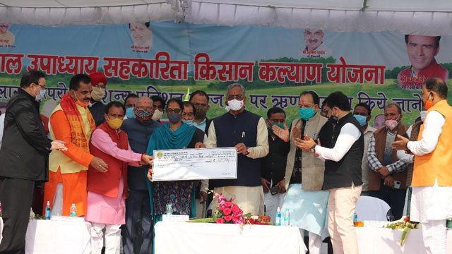 रूद्रपुर/देहरादून। मुख्यमंत्री त्रिवेन्द्र सिंह रावत ने शनिवार को गांधी पार्क, रूद्रपुर में दीनदयाल उपाध्याय सहकारिता किसाना कल्याण योजना का शुभारम्भ ( Deendayal Upadhyay Cooperative Farmers Welfare Scheme launched ) किया। उन्होंने योजना के तहत लाभार्थियों को बिना ब्याज के 03 लाख रूपये का ऋण के चैक वितरित करते हुए कहा कि किसानों के कल्याण के लिए राज्य सरकार प्रतिबद्ध है।